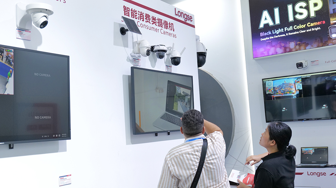 这次,长视携黑光全彩收集摄像机、双目超广角收集摄像机和4G WIFI摄像机参展。